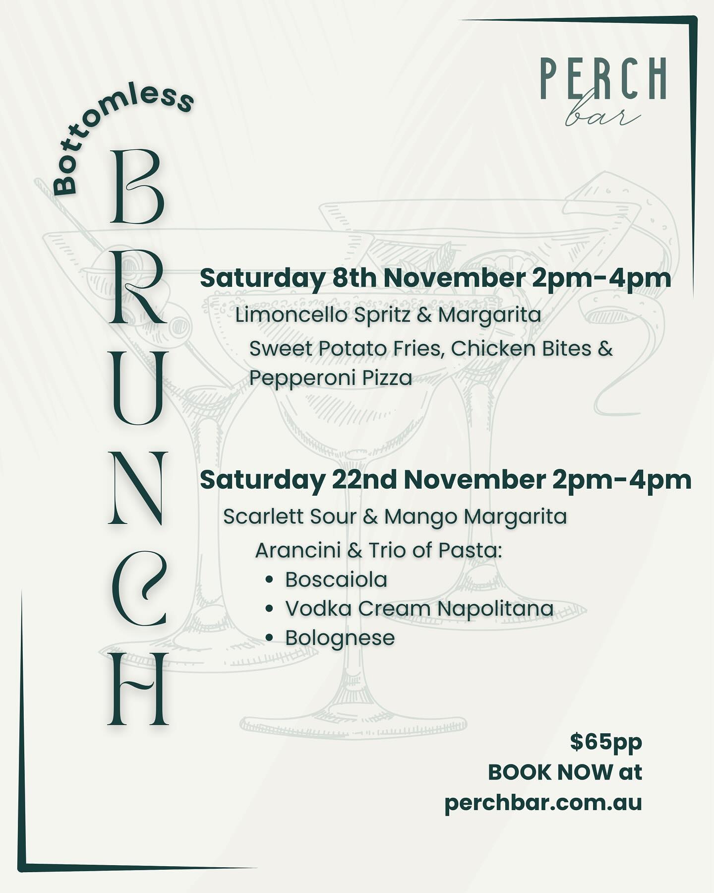 Get the Spring vibes flowing with Perch Bar’s September Bottomless Brunch!