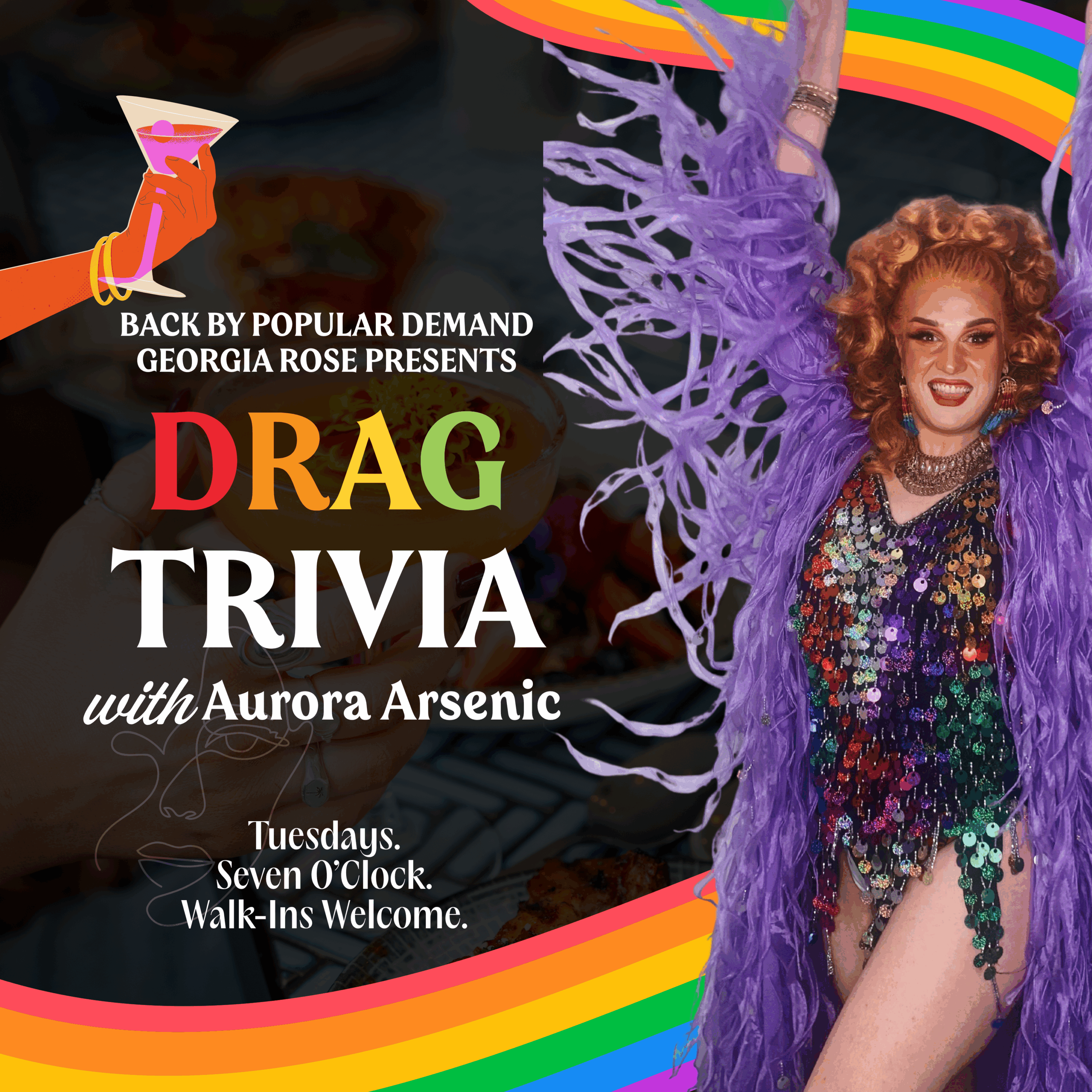 Back by popular demand, join the one and only Aurora Arsenic for a night of brain-teasing fun and fierce competition, 7pm Tuesdays at Georgia Rose.