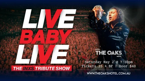 The critically acclaimed LIVE BABY LIVE: THE INXS TRIBUTE SHOW is THE ultimate live INXS concert experience! Across Australia far and wide, live music lovers are consistently floored and captivated by LIVE BABY LIVE who are recognised as the most authentic & electrifying INXS tribute on the market with an uncanny resemblance to the energy and excitement that once took the whole entire world by storm.