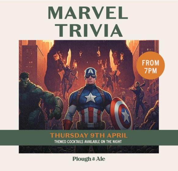 Multiverse mayhem meets pub trivia. Join us for Marvel Trivia on Thursday 9th April from 7pm. Grab your team and book your table in.