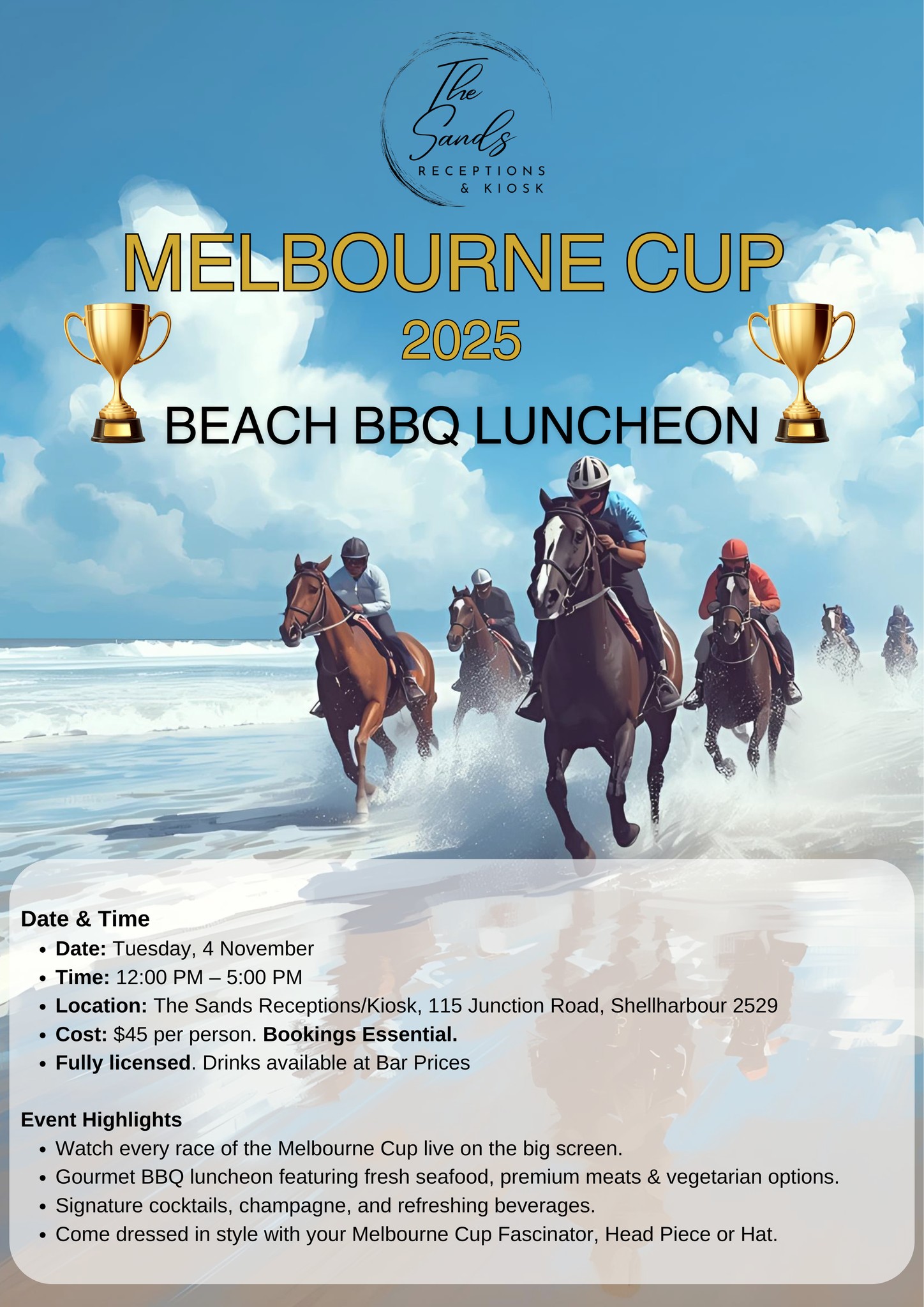 Melbourne Cup 2025 Beach BBQ Luncheon @ The Sands, Shellharbour Tickets | EventBookings
