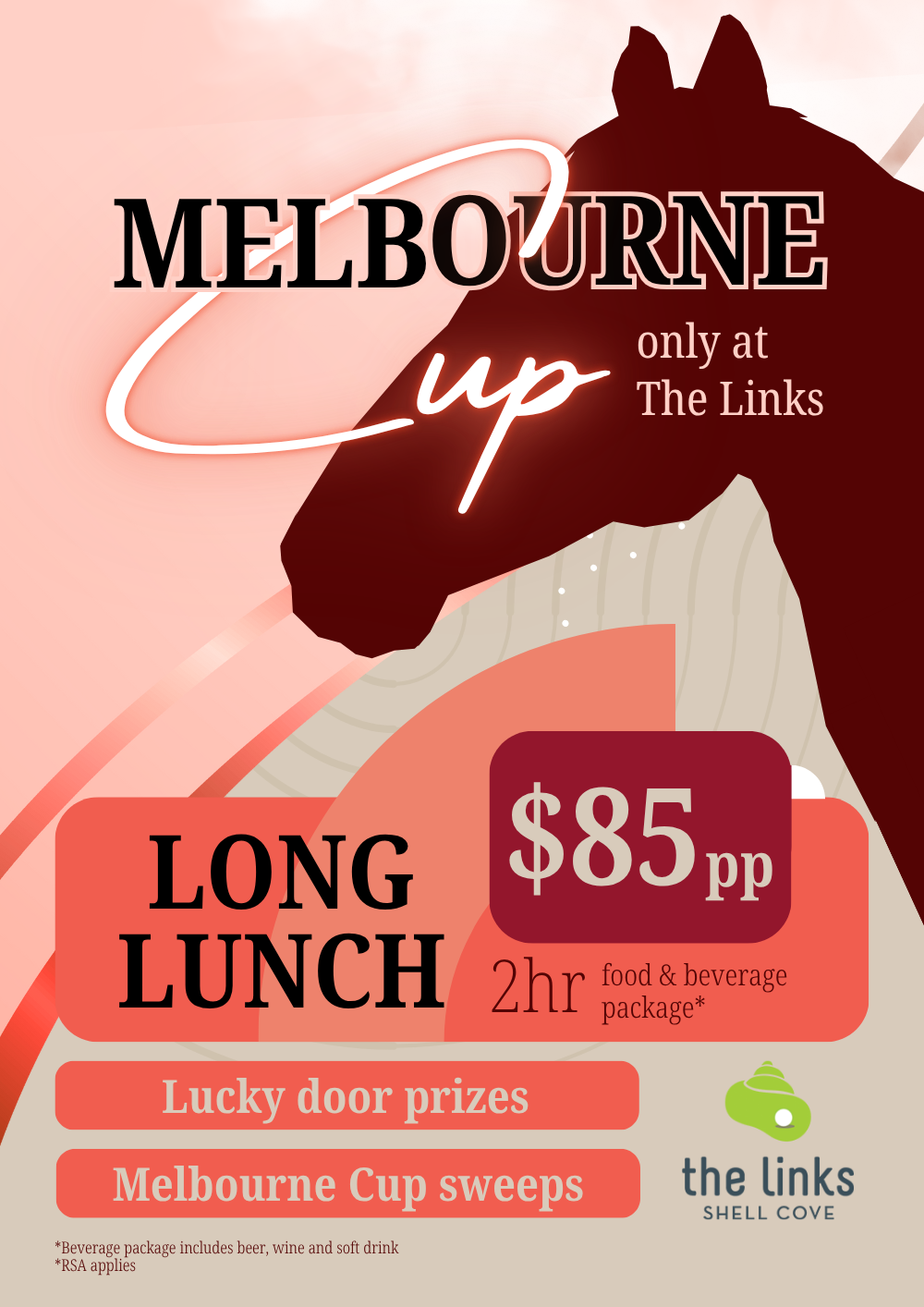 Join us for our Melbourne Cup Long Lunch, featuring a 2 hour food and beveridge package, lucky door prizes and Melbourne Cup Sweeps.