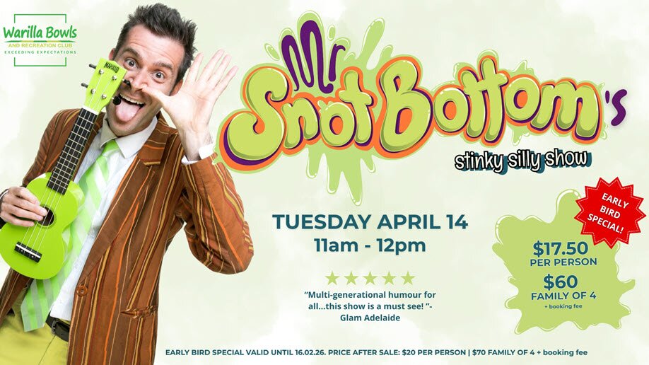 Like a cross between Shrek and Mr Bean, you can expect snot-loads of gross-tastic gags, slimy songs and just wrong routines perfect for weird kids 4 and up and their even weirder parents!