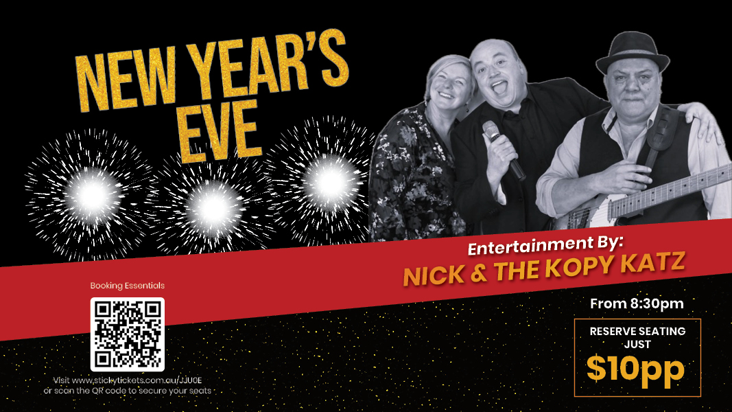 Reserve seating by getting your party fare sorted early to guarantee a great night with live entertainment from Nick & The Kopy Katz