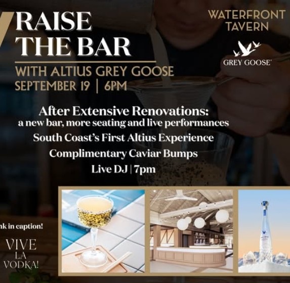 Join in for an unforgettable evening featuring the South Coast’s first Grey Goose Altius experience, live DJ beats and waterfront glamour.