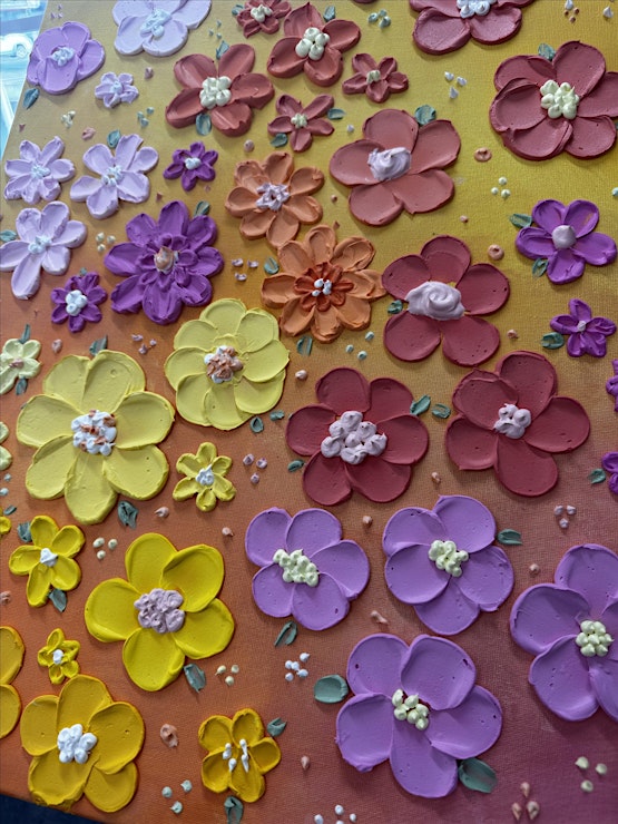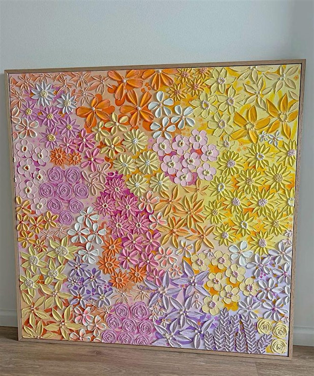 You’ll create a beautiful floral artwork using structure paste to create art with volume and flare. Then, unleash your imagination as you paint your canvases first and then palette knife and pipe on your beautiful florals.