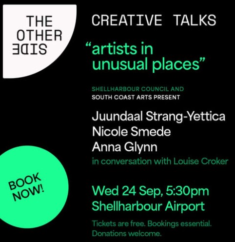 Join contemporary Indigenous multi-disciplinary artist, Juundaal Strang-Yettica, cross-cultural multidisciplinary artist, Nicole Smede and contemporary multimedia artist Anna Glynn for a dynamic and insightful conversation with South Coast Arts Executive Director Louise Croker.